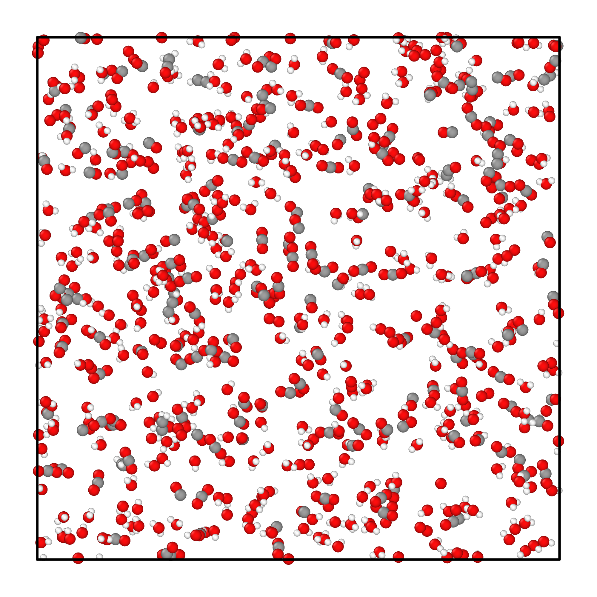 When system prepared, we will use GPUMD to perform a 200 ps molecular dynamics simulation. According to the adiabatic combustion temperature of ethanol, which is 2082 ℃, ~2350 K, we will set the simulation temperature as 2350 K. And the ensemble is NVT, using langevin thermostat.